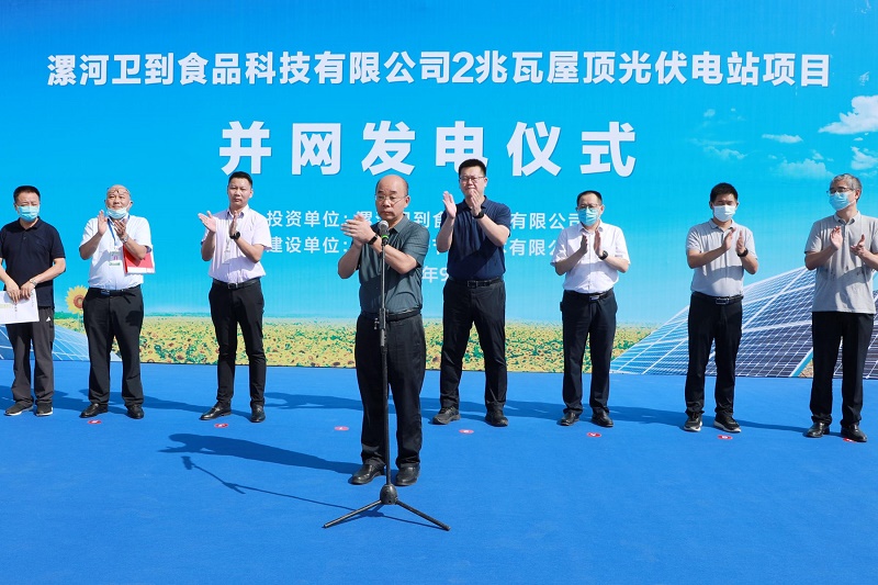 9月9日上午,金年会美味“2兆瓦屋顶光伏电站项目”成功并网发电,庆祝仪式在二期园区卫到厂隆重举行。市发改委副主任牛宪民,开发区党工委委员、管委会副主任孙波等市区相关部门负责人,金年会美味副总裁陈林,河南简好节能董事长杨伟功,以及来自利通液压、汇龙液压、景田、泓一食品等公司的企业家代表出席仪式。
