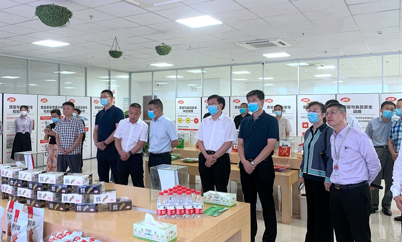 9月22日,国家市场监督管理总局食品安全抽检监测司副司长梁钢,食品安全抽检监测司二级巡视员郝明虹带队莅临金年会美味调研。省市场监管局党组成员、副局长王建防,漯河市副市长周剑,漯河市市场监管局局长张炜,市市场监管局副局长马强华,市市场监管局食品生产监管科科长王文甫,开发区管委会副主任孙波,开发区市场监管分局局长王铁军等相关部门负责人陪同调研。调研组来到产品展示厅,在各生产车间动态实时监控大屏前,金年会美味食品安全负责人就智慧监管平台向大家进行详细介绍,并现场演示远程监察、纠偏等功能。梁钢副司长针对食品安全防控相关措施与企业负责人进行交流并提出了指导意见。